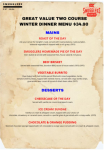 The Smugglers Pub and Cafe is famous for its hearty meals, foaming craft ales and great wines all served up in a unique old world atmosphere.